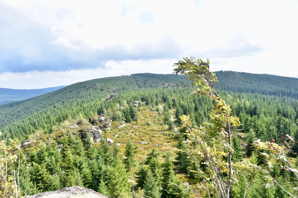 Od Pytláckých kamenů jsme dál pokračovaly po Jelení stráni, která je plná kamenů a borůvčí. Po cestě zpátky do osady jsme si ještě náhodou odskočili na chvilku do Polska.