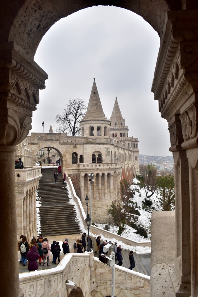 Rybářskou baštu nemůžete minout ať už tam jdete z jakýkoliv strany. Vypadá jako z pohádky. Za mě je to nejnádhernější místo, jaký můžete v Budapešti navštívit. Navíc ještě když bylo zasněžený. Uprostřed stojí Matyášův chrám s nádhernou barevnou střechou a kdyby nebyla taková zima tak bych tam dokázala strávit snad hodiny.