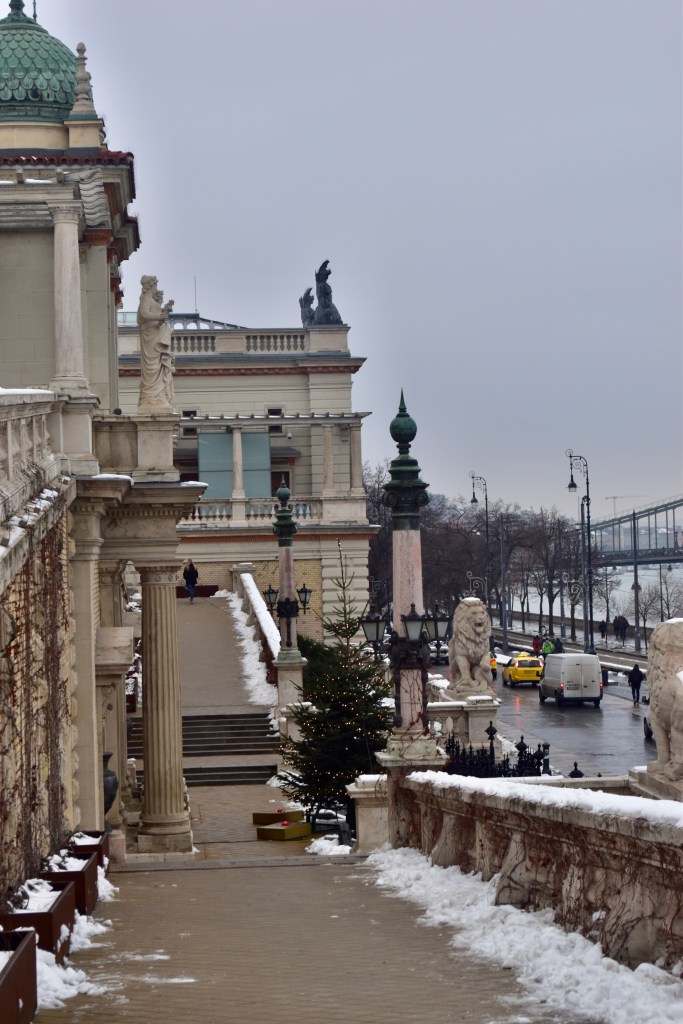 Z Rybářské bašty jsem došla na Budínský hrad, který je jen kousek. Z hradu jsem potom sešla dolů na nábřeží. Chvíli jsem šla po nábřeží a potom začla nejzábavnější část, kdy jsem se šplhala po zledovatělých cestičkách nahoru k Citadele. Cesta nahoru vede parkem a v létě je tam určitě krásně, ale v zimě se cestičky promění v kluzavku a je to docela sranda vyškrábat se až nahoru. Doteď nechápu že jsem tam ani jednou nespadla 😄. Nahoře na vás čeká budapešťská Socha Svobody, která drží nad Budapeští peříčko a představuje osvobození Maďarska od nacismu.